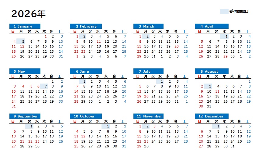 | ご利用行事※1 | 曜日 | 受付開始 |