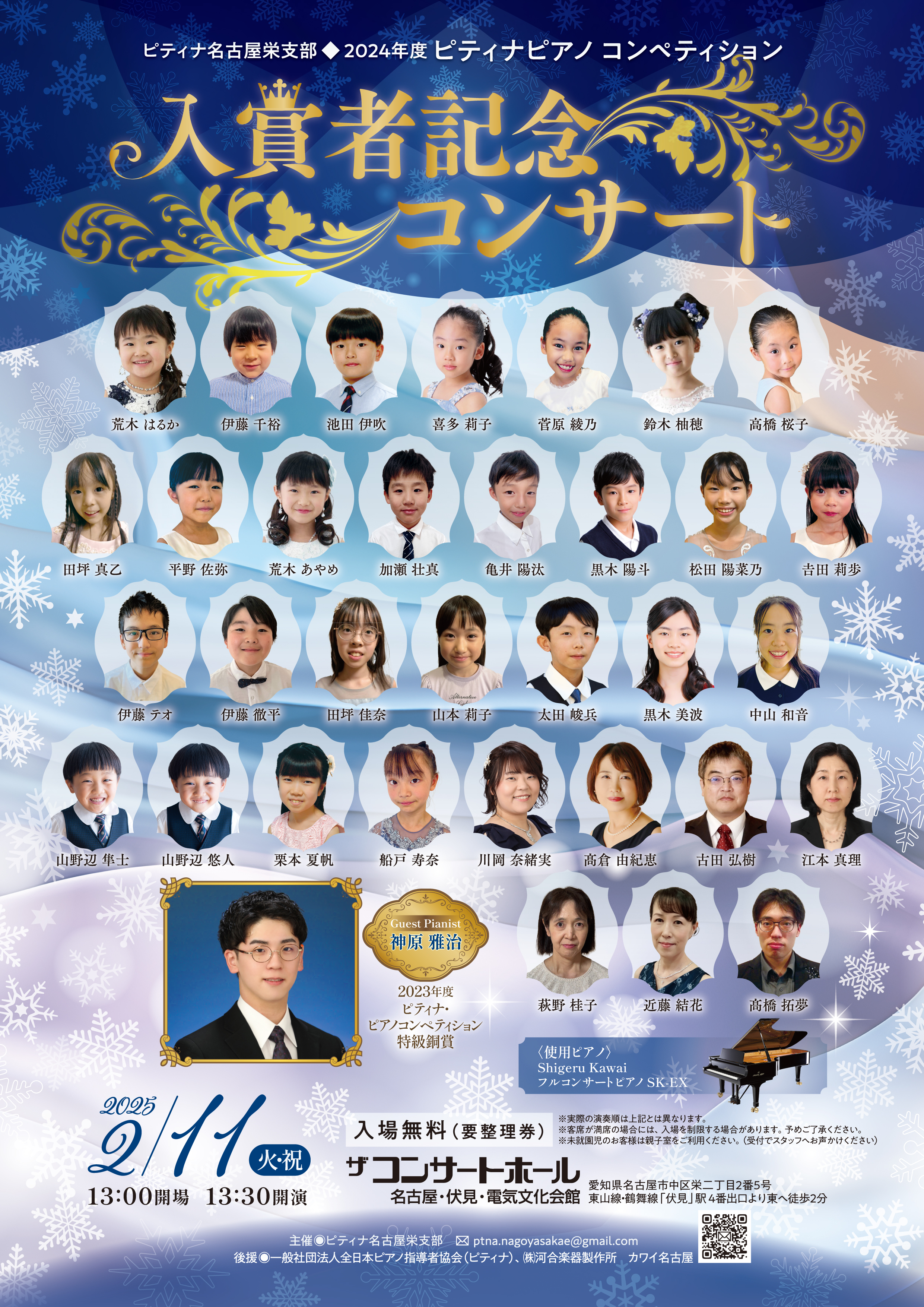 トップページ イベントスケジュール ピティナ名古屋栄支部 2024年度ピティナピアノコンペティション 入賞者記念コンサート ピティナ名古屋栄支部 2024年度ピティナピアノコンペティション 入賞者記念コンサート 催事内容はこちらをご覧ください 施設名 ザ・コンサートホール 開催日 2025年2月11日(火) 時間 13:30 料金 無料(要整理券) お問い合わせ ピティナ名古屋栄支部 ptna.nagoyasakae@gmail.com 電気文化会館では、チケットのお取り扱いをしておりません。有料チケットご購入の際は、主催者さまに直接お尋ねください。