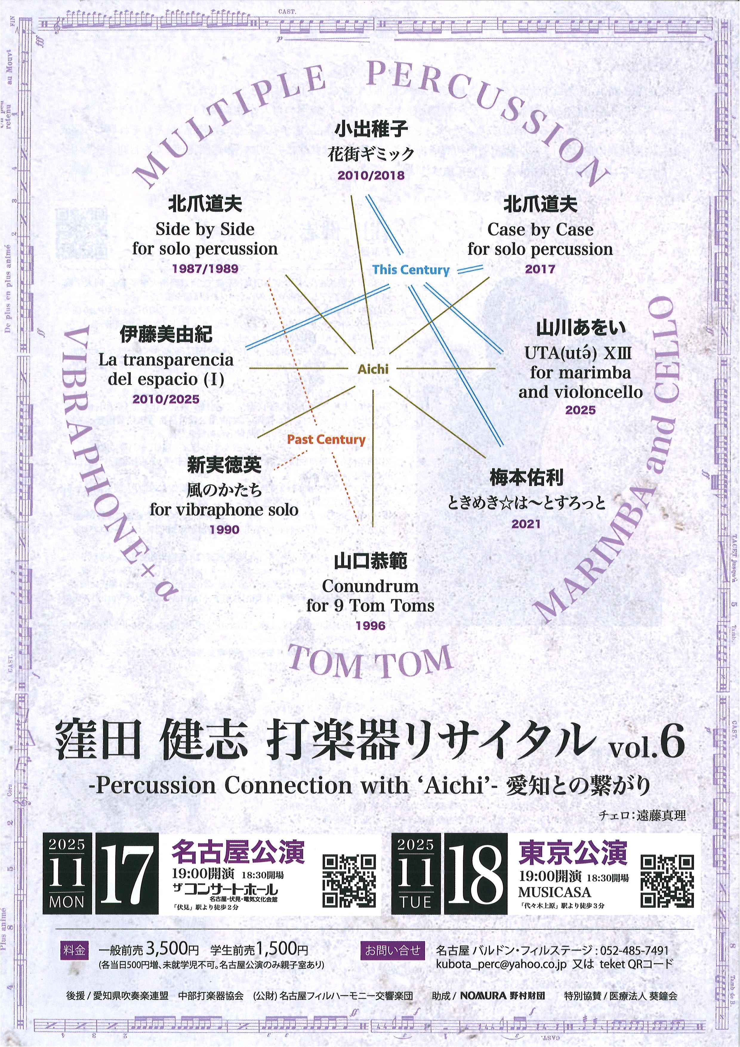 トップページ イベントスケジュール 窪田健志 打楽器リサイタル vol.6「Percussion Connection with Aichi ~愛知との繋がり~」 窪田健志 打楽器リサイタル vol.6「Percussion Connection with Aichi ~愛知との繋がり~」 催事内容はこちらをご覧ください 施設名 ザ・コンサートホール 開催日 2025年11月17日(月) 時間 19:00 料金 ¥3,500(当日¥4,000) 学生¥1,500(当日¥2,000) お問い合わせ バルドン・フィルステージ (052)485-7491 kubota_perc@yahoo.co.jp 電気文化会館では、チケットのお取り扱いをしておりません。有料チケットご購入の際は、主催者さまに直接お尋ねください。