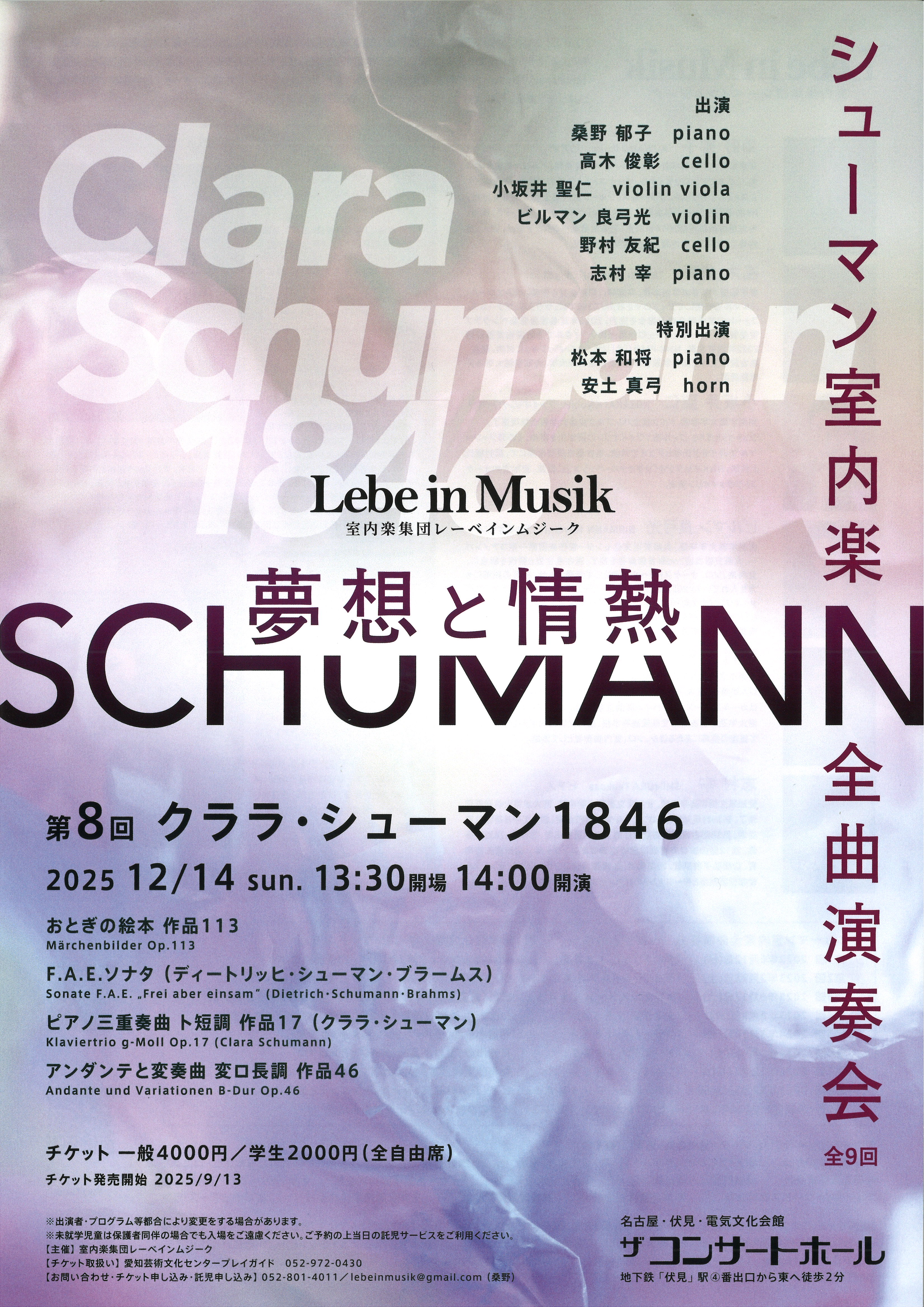 シューマン室内楽全曲演奏会 ~夢想と情熱~ 第8回「クララ・シューマン1846」