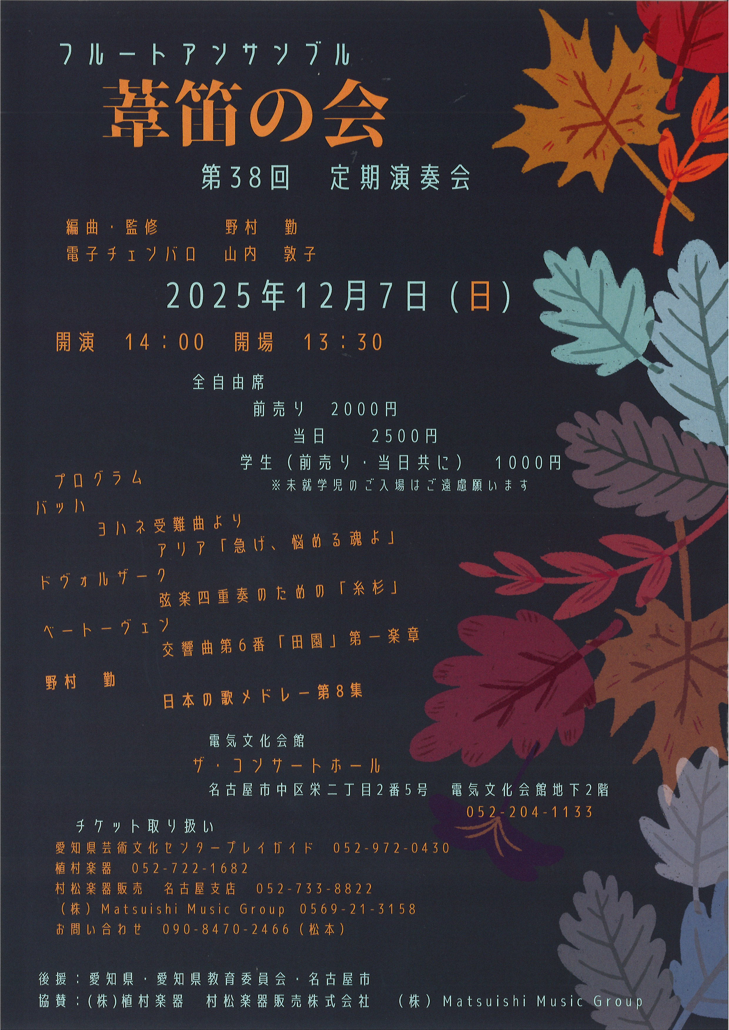 フルートアンサンブル 葦笛の会 第38回 定期演奏会