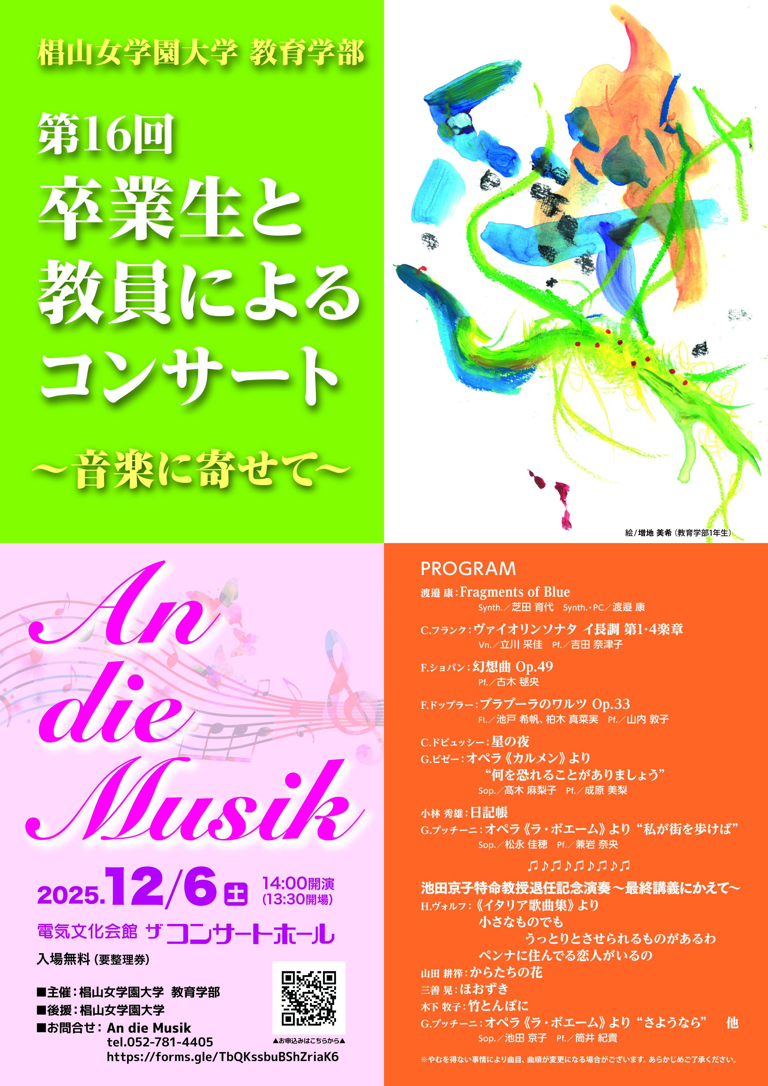 椙山女学園大学 教育学部 第16回卒業生と教員によるコンサート An die Musik ~音楽に寄せて~