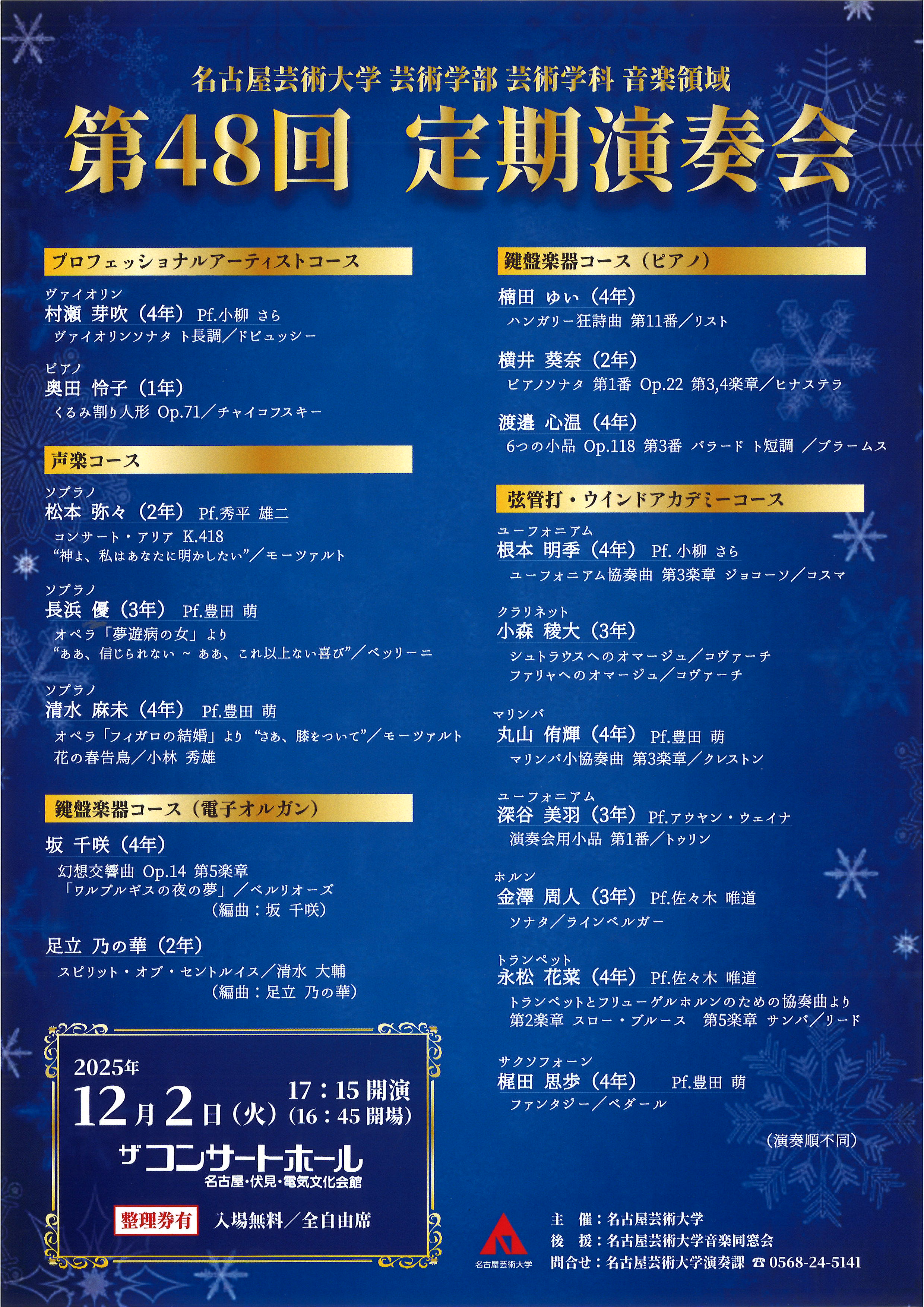 名古屋芸術大学 芸術学部 芸術学科 音楽領域 第48回定期演奏会
